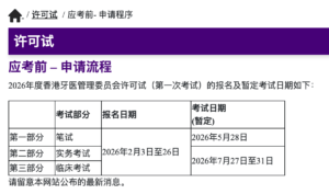 香港牙医管理委员会已正式公布2026年许可试的首次考试安排。为助大家清晰规划,我们铮希教育整理了完整的报考日程、核心材料清单,并基于此提供关键的备考路径建议。