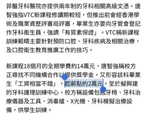 如果你担心“公立医院工资低”,再来看另一组信号。职业训练局(VTC)计划推出的牙科卫生护理专业文凭,首批毕业生预计2026年下半年入行,起薪点约2万元港币。这只是牙科卫生员的薪酬。