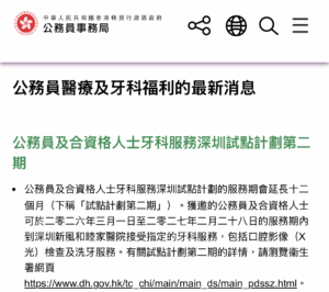 今天起,公务员及合资格人士可以到深圳新风和睦家医院接受牙科服务,包括X光检查和洗牙。这是香港特区政府推出的“深圳试点计划第二期”,为期一年,从今天开始到明年2月28日。
