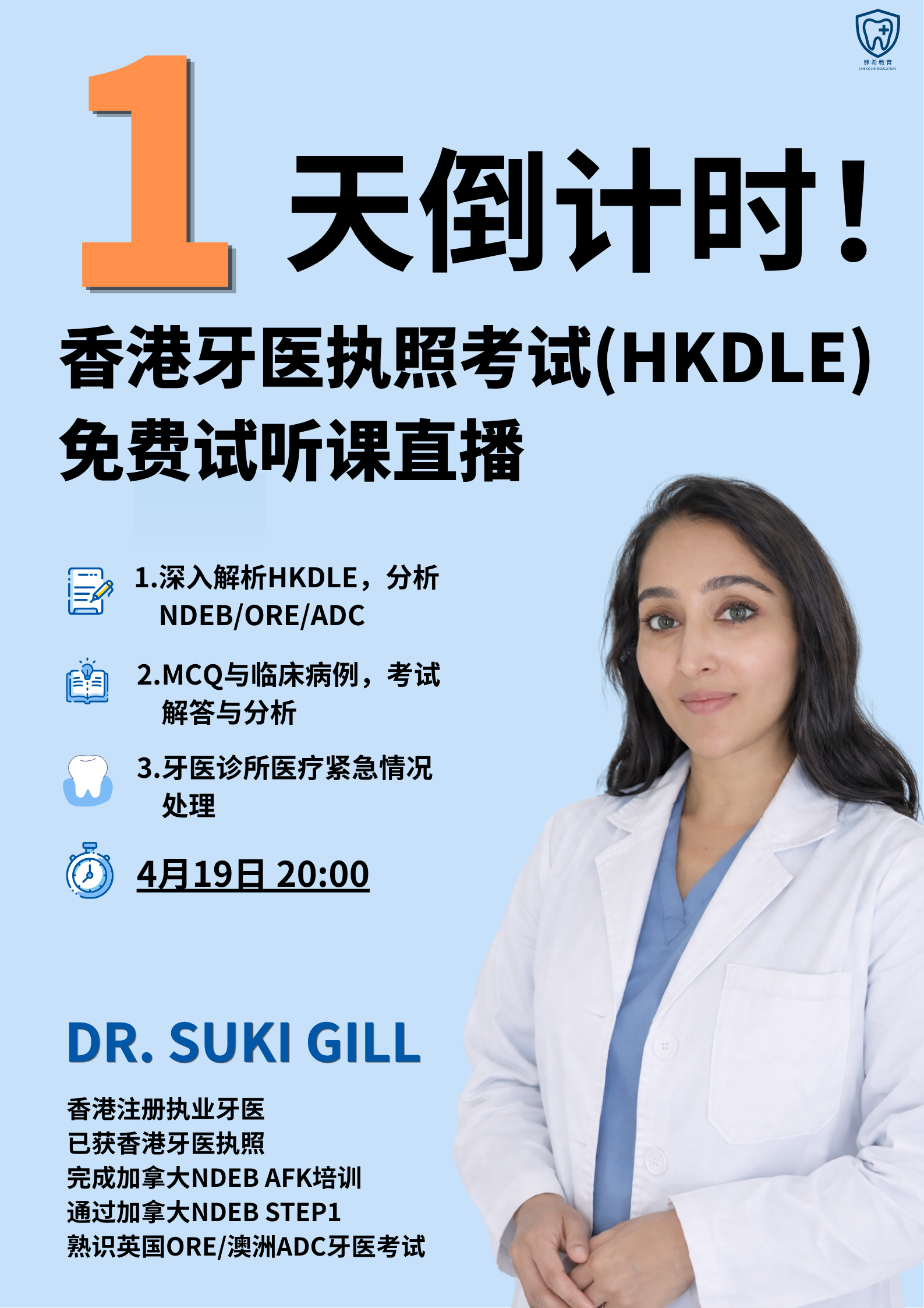 4.19(明晚)20点,Dr.Suki将会开启一场全程两个半小时的直播,主题非常明确,就是关于牙科诊所里的医疗紧急情况处理